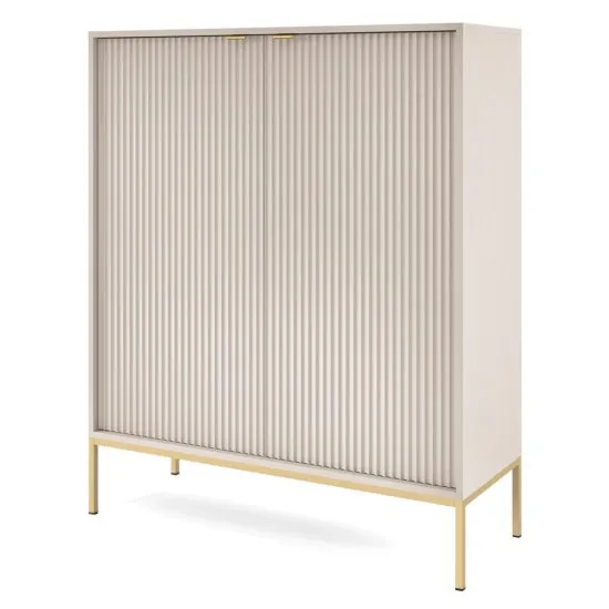 SELSEY Komoda wysoka Vellore kaszmir z ryflowanymi frontami i złotym stelażem