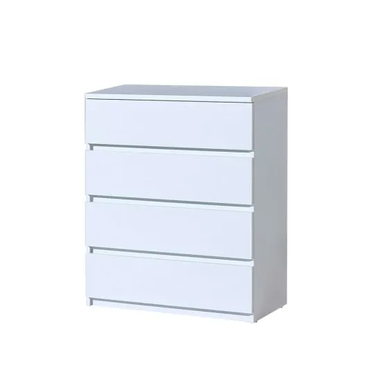 Zależy Ci na wystroju, w ktorym wszystko będzie zapięte na ostatni guzik? Kolekcja mebli Dobie pomoże Ci osiągnąć fenomenalne rezultaty! Komoda z szufladami Dobie to świetna propozycja dla nowoczesnej przestrzeni. Jej kompaktowa bryła doskonale odnajdzie się w salonie czy sypialni, gdzie nie zajmie wiele miejsca, a śnieżnobiałe wybarwienie pomoże optycznie powiększyć przestrzeń. Cztery pojemne szuflady mebla zatroszczą się o Twoje ubrania, bieliznę, komplet pościeli czy dziecięce zabawki, dzięki czemu otoczenie produktu zaprezentuje się niezwykle schludnie. Szczegoły produktu: korpus oraz blat wykonano z laminowanej płyty wiorowej, czyli tworzywa odpornego na wilgoć oraz zarysowanie, grubość blatu: 22 mm, krawędzie zabezpieczono obrzeżami PCV, ktore dodatkowo zwiększyły trwałość konstrukcji, tylna ściana to trwała płyta HDF, obciążenie połki: do 5 kg, zawias: puszkowy prosty (nakładany), materiał nożki: tworzywo, prowadnica: kulkowa, wybarwienie: biel arktyczna.