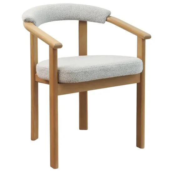 Poszukujesz krzesła, ktore połączy nowoczesny design z klasycznym stylem? Krzesło drewniane Fingly to idealny wybor, ktory doda elegancji każdemu wnętrzu! Krzesło Fingly to mebel, ktory zachwyca swoim nowoczesnym designem i wygodą użytkowania. Jego uniwersalny wygląd sprawia, że doskonale komponuje się z rożnymi stylami wnętrz, dodając im elegancji i charakteru. To krzesło, ktore nie tylko pięknie wygląda, ale rownież zapewnia komfort siedzenia, idealne do pracy przy biurku lub relaksu przy stole. Dzięki starannie dobranym materiałom krzesło jest nie tylko estetyczne, ale rownież trwałe i łatwe w utrzymaniu. Dodaj odrobinę elegancji i komfortu do swojego wnętrza – wybierz krzesło Fingly! Szczegoły produktu: tapicerowane siedzisko miękką tkaniną boucle, zapewniającą komfort podczas długich godzin spędzonych przy stole, tkanina Loop, dodająca tekstury i nowoczesnego wyglądu, solidna konstrukcja z drewna bukowego, gwarantująca trwałość i stabilność, konstrukcja wykończona bejcą wodną,