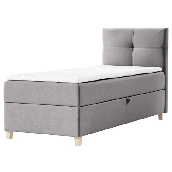 Marzysz o tym, aby każda noc spędzona była w atmosferze komfortu? W osiągnięciu takiego rezultatu pomoże wygodne łożko kontynentalne z serii Firmini! Łożko kontynentalne z serii Firmini to wybor doskonały dla każdego miłośnika klasycznych rozwiązań i maksymalnej wygody. Wszystko za sprawą średnio twardego materaca bonellowego z topperem z miękkiej pianki T25. Bazą konstrukcji są wytrzymałe nożki z drewna bukowego, a uroku całości dodaje wezgłowie z ozdobnym pikowaniem. Wnętrze łożka wykorzystasz jako praktyczny pojemnik na drobne przedmioty i tekstylia codziennego użytku. Warte uwagi jest także obicie mebla. Wykonano je z welurowej tkaniny Soro o plecionej strukturze. Materiał wykazuje odporność na ścieranie, tarcie, pilling i mechacenie. Nie płowieje także pod wpływem światła. Szczegoły produktu: nożki z wytrzymałego drewna bukowego, wysokość podstawy (bez materaca): 34 cm, powierzchnia spania: 100x200 cm, maksymalne obciążenie: 140 kg, posiada miękki topper o wysokości 4 cm (pianka