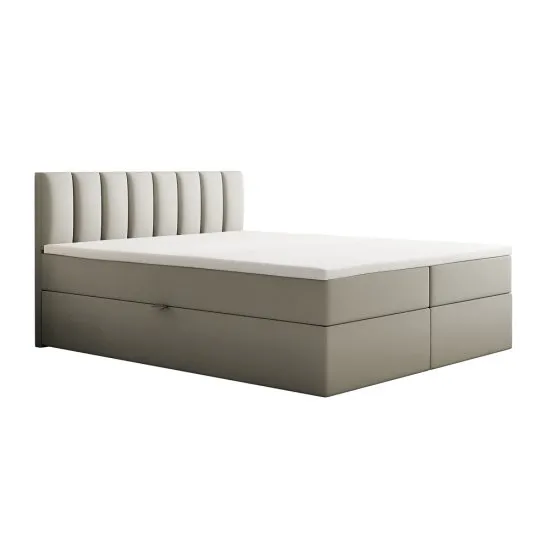 Chcesz urządzić swoją sypialnię w nowoczesnym stylu? Łożko kontynentalne Carbini spełni wszystkie Twoje oczekiwania! Łożko kontynentalne Carbini składa się ze skrzyni, czyli podstawy łożka oraz wbudowanego w korpus materaca kieszeniowego. Dzięki takiemu wykonaniu, mebel zapewnia wysoki komfort snu i skuteczną regenerację po ciężkim dniu. W podstawie łożka umieszczono dwa obszerne pojemniki unoszone na boki, gdzie wygodnie przechowasz zapasowe komplety pościeli czy inne tekstylia, co pozwoli Ci zaoszczędzić miejsce w pomieszczeniu. Bryła obita jest w całości miękką, welurową tkaniną, a jej wezgłowie ozdobiono dodatkowo gustownymi przeszyciami w postaci pionowych paneli. Szczegoły produktu: powierzchnia spania: 140x200 cm łożko wykonane zostało w tkaninie Matt Velvet 09 w kolorze szarobeżowym, Matt Velvet to miękka, welwetowa tkanina o gładkiej, matowej powierzchni. Odporna na ścieranie, pilling, tarcie i mechacenie. Nie blaknie pod wpływem słońca. Technologia Wodoodporna utrudnia