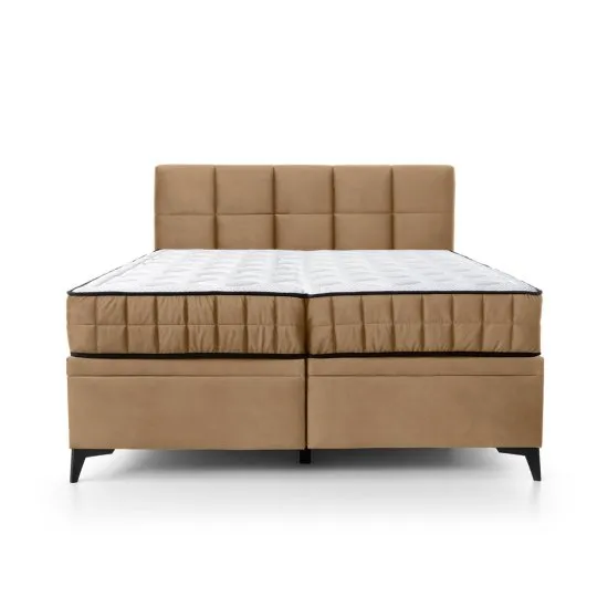 SELSEY Łóżko kontynentalne 160x200 cm Beriano z pojemnikami i materacem beżowe welur