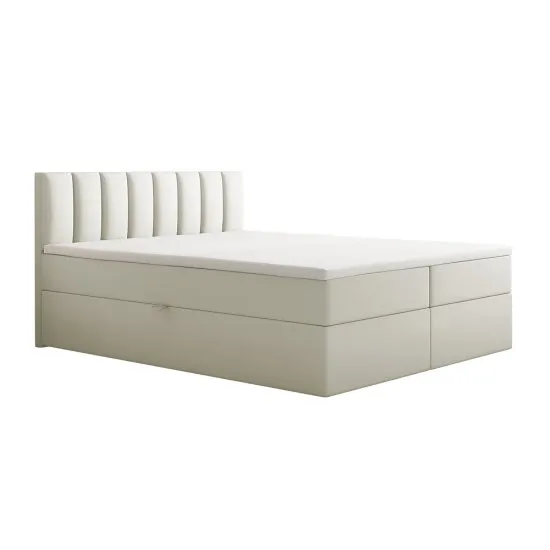 Chcesz urządzić swoją sypialnię w nowoczesnym stylu? Łożko kontynentalne Carbini spełni wszystkie Twoje oczekiwania! Łożko kontynentalne Carbini składa się ze skrzyni, czyli podstawy łożka oraz wbudowanego w korpus materaca bonellowego. Dzięki takiemu wykonaniu, mebel zapewnia wysoki komfort snu i skuteczną regenerację po ciężkim dniu. W podstawie łożka umieszczono dwa obszerne pojemniki unoszone na boki, gdzie wygodnie przechowasz zapasowe komplety pościeli czy inne tekstylia, co pozwoli Ci zaoszczędzić miejsce w pomieszczeniu. Bryła obita jest w całości miękką, welurową tkaniną, a jej wezgłowie ozdobiono dodatkowo gustownymi przeszyciami w postaci pionowych paneli. Szczegoły produktu: powierzchnia spania: 160x200 cm łożko wykonane zostało w tkaninie Matt Velvet 06 w kolorze kremowym, Matt Velvet to miękka, welwetowa tkanina o gładkiej, matowej powierzchni. Odporna na ścieranie, pilling, tarcie i mechacenie. Nie blaknie pod wpływem słońca. Technologia Wodoodporna utrudnia wchłanianie