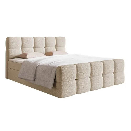 SELSEY Łóżko kontynentalne 160x200 cm Cloudy z pojemnikami i topperem jasnobeżowe boucle