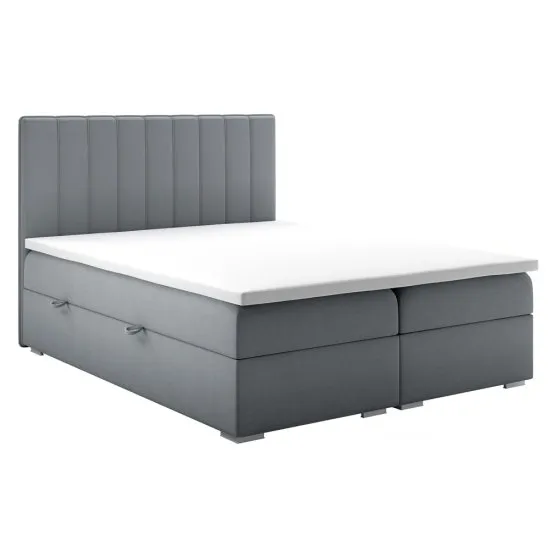 SELSEY Łóżko kontynentalne 160x200 cm Hunbert z pojemnikami i topperem szare welur hydrofobowy