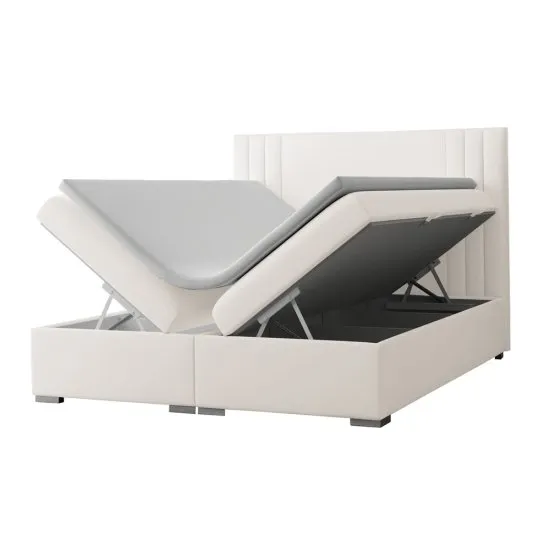 Marzysz o sypialni, w ktorej wreszcie uda Ci się zrelaksować po całym dniu ciężkiej pracy? Dla naszego wyjątkowego łożka kontynentalnego Monder takie wyzwanie to nic strasznego! Mebel osadzono na wytrzymałej skrzyni z drewna i białych płyt o grubości 16 mm, na ktorej spoczął materac bazowy o wysokości 20 cm wypełniony sprężynami bonelowymi oraz pianką T25. Dzięki takiej budowie materac z pewnością podbije Twoje serce swoją wygodną powierzchnią, ktora jednocześnie będzie w stanie zapewnić odpowiednie podparcie Twojemu ciału. Konstrukcja zwieńczona została topperem z pięciocentymetrowej pianki T21 chroniącym mebel przed zanieczyszczeniami i dodatkowo zwiększającym komfort jego użytkowania. Łożko wyposażono w ozdobnie przeszywany zagłowek obity miękką pianką. Posiada ono także dwa pojemniki na pościel otwierane na boki. Szczegoły produktu: zagłowek subtelnie ożywi wnętrze i jednocześnie doskonale podeprze Twoje plecy podczas wieczornej aktywności, np. czytania książki, płaskie nożki z