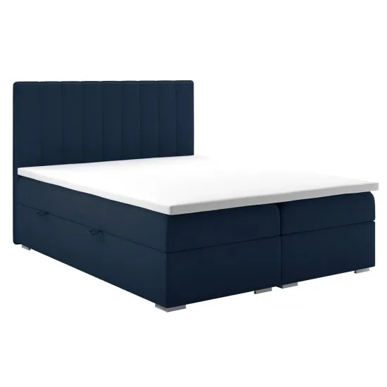SELSEY Łóżko kontynentalne 180x200 cm Hunbert z pojemnikami i topperem granatowe welur hydrofobowy