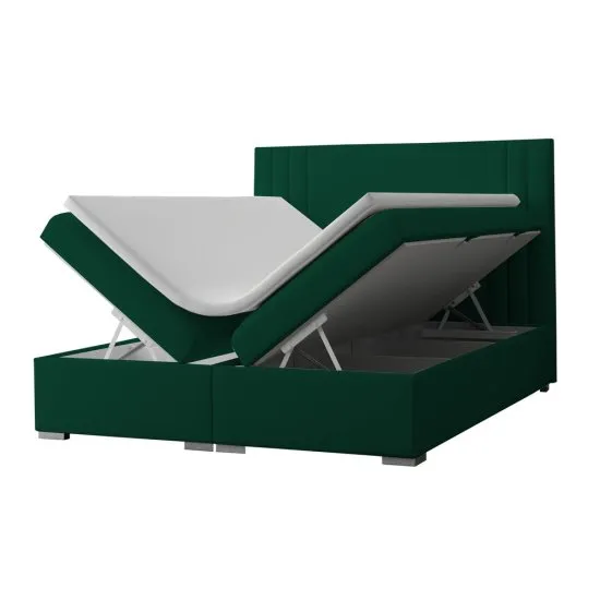 SELSEY Łóżko kontynentalne 180x200 cm Monder z pojemnikami i topperem zielone welur hydrofobowy