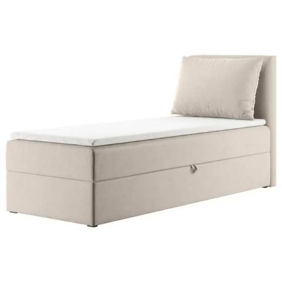 SELSEY Łóżko kontynentalne 80x200 cm Fayence z pojemnikiem i topperem jednoosobowe beżowe prawostronne