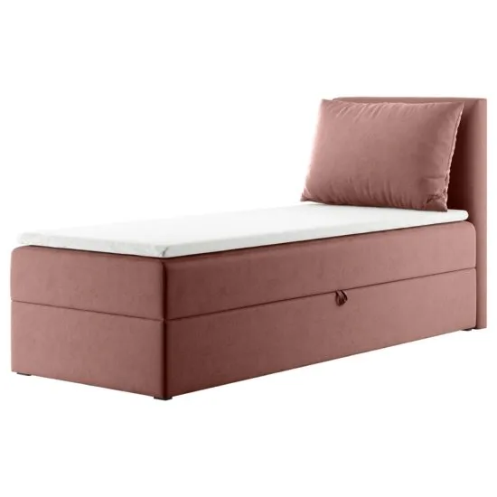 SELSEY Łóżko kontynentalne 80x200 cm Fayence z pojemnikiem i topperem jednoosobowe różowe prawostronne