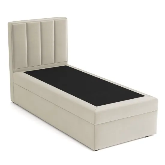 SELSEY Łóżko kontynentalne 90x200 cm Rinus z pojemnikiem szarobeżowe welur hydrofobowy prawostronne