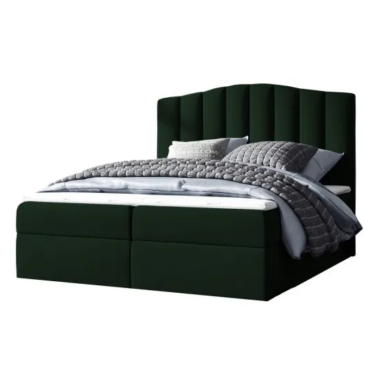 SELSEY Łóżko kontynentalne Alcudia 160x200 z dwoma pojemnikami, materacem i topperem zielone hydrofobowe