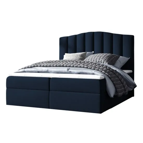 SELSEY Łóżko kontynentalne Alcudia 180x200 z dwoma pojemnikami, materacem i topperem granatowe hydrofobowe