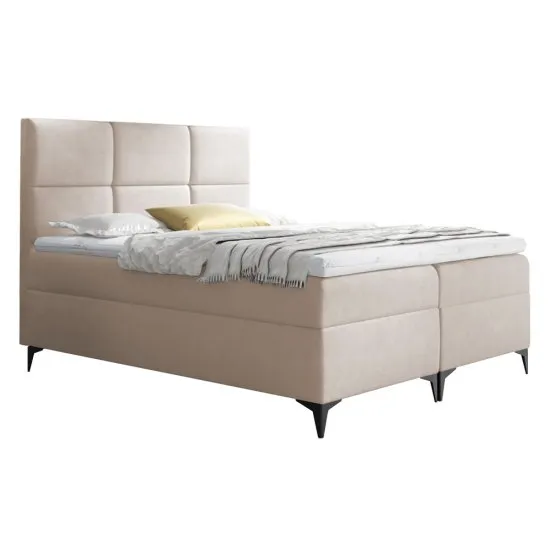 SELSEY Łóżko kontynentalne Firome 140x200 z dwoma pojemnikami, materacem i topperem beżowe hydrofobowe