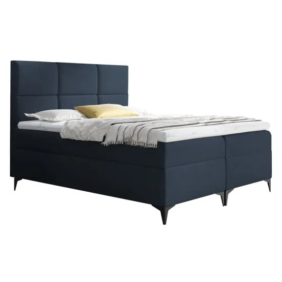 SELSEY Łóżko kontynentalne Firome 140x200 z dwoma pojemnikami, materacem i topperem granatowe hydrofobowe
