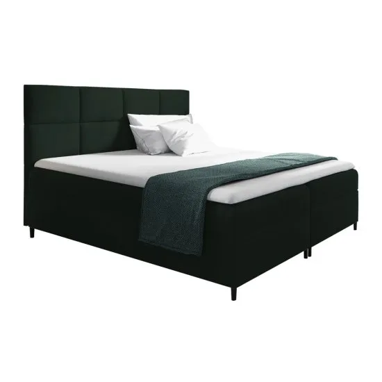 SELSEY Łóżko kontynentalne Fremollo 120x200 z dwoma pojemnikami, materacem i topperem ciemnozielone