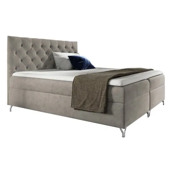 Planujesz stworzyć funkcjonalną i elegancką sypialnię, ktorą zachwycisz rodzinę i znajomych? Jeśli tak to świetnie trafiłeś! Z łożkiem kontynentalnym Lozanna stworzysz przestrzeń idealną do wypoczynku i snu! Łożko kontynentalne Lozanna to mebel w ktorym funkcjonalność spotyka się ze stylem glamour. Łożko w wysokim wezglowiu posiada gustowne pikowania, ktore dodadzą wnętrzu elegancji, a samo wezgłowie podeprze Twoje plecy podczas wieczornej aktywności, np. czytania książki. Lozanna posiada dodatkowo stylowe, metalowe nożki, ktore nadają jej lekkości. Wnętrze Lozanny skrywa w sobie dwa spore pojemniki na pościel umiejscowione pod materacem, łatwo otwieralne, dzięki automatowi na sprężynach. W zestawie z łożkiem znajduje się materac, ktory składa się ze sprężyn kieszeniowych bonellowych oraz pianki wysoko elastycznej T30. Efektem takiego połączenia jest ogromna wygoda spania na nim. Miękkości dodaje rownież topper o wysokości 5 cm. Całości dopełnia miła w dotyku welurowa tkanina