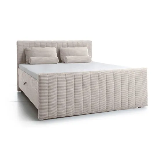 SELSEY Łóżko kontynentalne Lullabino 160x200 cm z pojemnikami i topperem jasnobeżowe sztruks