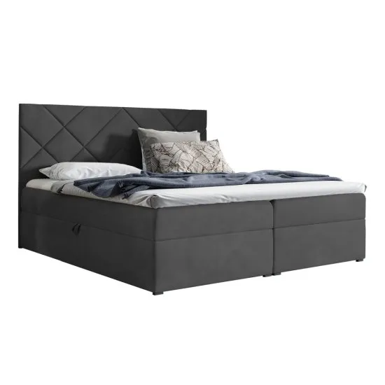 SELSEY Łóżko kontynentalne Mubappa 140x200 z dwoma pojemnikami, materacem i topperem ciemnoszare hydrofobowe