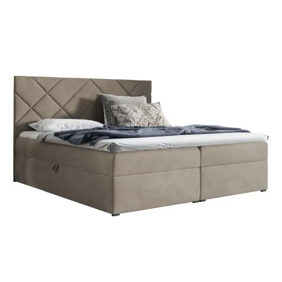 Szukasz nowoczesnego, a zarazem praktycznego łożka do sypialni? Przedstawiamy łożko kontynentalne Mubappa – klasę samą w sobie! Łożko kontynentalne Mubappa to solidna prosta bryła, idealnie wpasowująca się w obecne trendy wnętrzarskie. To co wyrożnia je na tle innych, to stylowe geometryczne przeszycia na wezgłowiu, dodające mu nowoczesności. Dużym atutem łożka są dwa spore pojemniki na pościel umiejscowione pod materacem, łatwo otwieralne, dzięki automatowi na sprężynach. W zestawie z łożkiem znajduje się materac, ktory składa się ze sprężyn kieszeniowych bonellowych oraz pianki wysoko elastycznej T30. Efektem takiego połączenia jest niezwykła wygoda spania na łożku Mubappa. Miękkości dodaje rownież topper o wysokości 5 cm. Całości dopełnia miła w dotyku welurowa tkanina sprawiając, że nie będziesz chciał z niego wstać. Nie czekaj, zamow już dziś! Szczegoły produktu: łożko kontynentalne o geometrycznych przeszyciach na wezgłowiu, powierzchnia spania: 140x200 cm, pojemniki na pościel