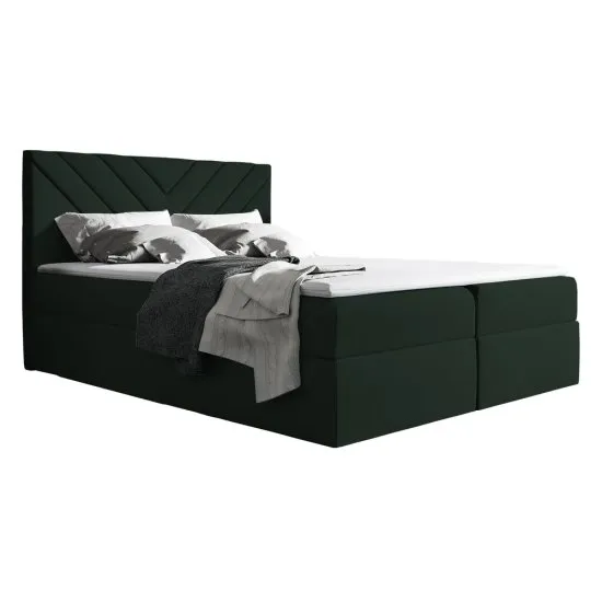 SELSEY Łóżko kontynentalne Ponferrada 140x200 z dwoma pojemnikami, materacem i topperem ciemnozielone