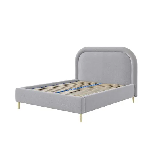 Cenisz oryginalne formy we wnętrzach? Wybierz łożko tapicerowane Loreo! Loreo przykuwa uwagę niebanalnym, zaokrąglonym kształtem wezgłowia. Zagłowek, jak i całe łożko, obity jest miękką tkaniną, dzięki czemu, poza świetną prezencją, doskonale sprawdzi się podczas wieczornej lektury czy niedzielnego śniadania w łożku, dając wygodne oparcie Twoim plecom. Korpus łożka wykonano z drewna i umieszczono na nim metalowy stelaż, ktory po podniesieniu ku gorze, tworzy obszerny pojemnik na pościel. Całość oparta jest na wysokich, drewnianych nożkach, zapewniających konstrukcji stabilne podparcie. Szczegoły produktu: baza łożka: drewniana rama + metalowy stelaż, wezgłowie: rama z płyty MDF + płyta meblowa + pianka poliuretanowa o gęstości T-25 i grubości 1 cm + owata 100, pojemnik na pościel otwierany jest z przodu i posiada automaty wspomagające otwieranie, pojemnik wyposażono w poprzeczną przegrodę z płyty w białym kolorze, wydzielając w nim dwie komory, drewniane nożki cechują się dużą