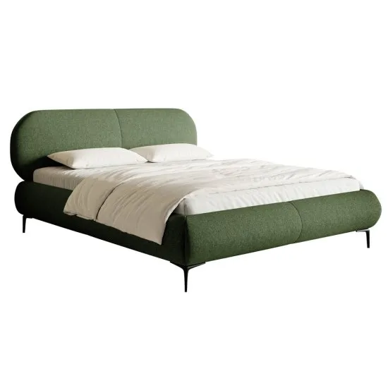SELSEY Łóżko tapicerowane 140x200 cm Ovalle z pojemnikiem stelaż metalowy oliwkowe plecionka hydrofobowa nóżki czarne