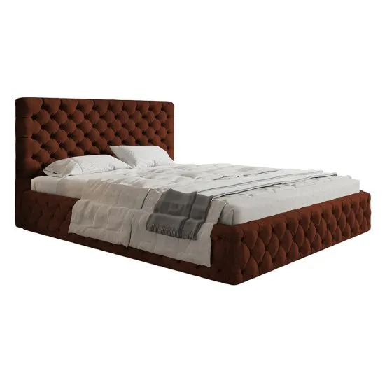 Marzysz o wyjątkowej sypialni, w ktorej odpoczniesz po ciężkim dniu pracy? Łożko tapicerowane Bellaris będzie strzałem w dziesiątkę! Bellaris to łożko obite miłą w dotyku tkaniną pluszową o intensywnej barwie, ktora ożywi wystroj Twojej sypialni. Solidna konstrukcja z płyty meblowej i drewna składa się ze skrzyni, w ktorej znajduje się obszerny pojemnik na pościel czy inne tekstylia – dzięki temu zaoszczędzisz mnostwo miejsca do przechowywania. Na podstawie łożka umieszczono drewniany stelaż wyposażony w podnośniki sprężynowe, ktore ułatwią Ci dostanie się do schowka. Bryłę korpusu ozdobiono gustownym pikowaniem, ktore nadaje całości elegancji i oryginalnego wykończenia. Bellaris fantastycznie sprawdzi się we wnętrzach w klimacie glamour podkreślając ich wyrafinowanie, a także w bardziej stonowanych i skromnych aranżacjach, gdzie będzie głownym punktem skupiającym wzrok. Szczegoły produktu: konstrukcja wykonana z wysokiej jakości płyty meblowej o grubości 1,6 cm i drewna, stelaż