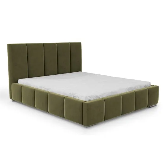 SELSEY Łóżko tapicerowane 160x200 cm Bodera z pojemnikiem oliwkowe w tkaninie hydrofobowej