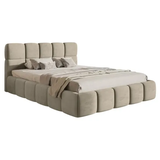 SELSEY Łóżko tapicerowane 160x200 cm Cloudy z pojemnikiem szarobeżowe welur hydrofobowy łatwoczyszczący stelaż metalowy