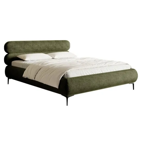 SELSEY Łóżko tapicerowane 160x200 cm Roule z pojemnikiem stelaż metalowy oliwkowe szenil nóżki czarne