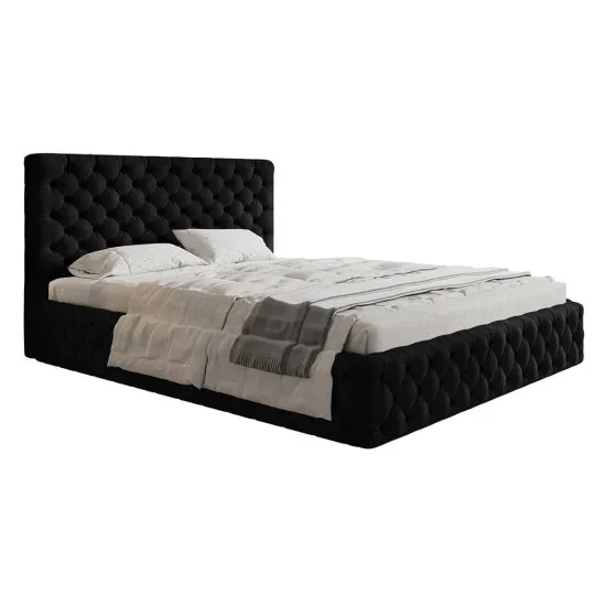 SELSEY Łóżko tapicerowane 180x200 cm Bellaris z pojemnikiem i pikowaniem czarne