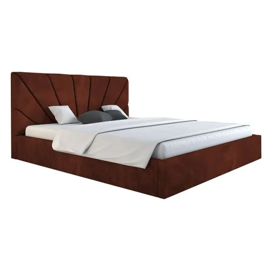 Chcesz zaaranżować stylową i komfortową sypialnię? Postaw na łożko tapicerowane Bellaris, a efekty Cię zachwycą! Bellaris to łożko tapicerowane gładką i miłą w dotyku tkaniną pluszową o intensywnej barwie, ktora ożywi wystroj Twojej sypialni. Solidna konstrukcja z płyty meblowej i drewna składa się z podstawy, w ktorej znajdziesz obszerny pojemnik na pościel czy inne tekstylia – dzięki temu oszczędzisz mnostwo miejsca do przechowywania. Na skrzyni łożka umieszczono drewniany stelaż wyposażony w podnośniki sprężynowe, ktore ułatwią Ci szybkie dostanie się do schowka. Wezgłowie łożka udekorowano szykownymi przeszyciami w postaci promieni odchodzących od centrum zagłowka, ktore nadają całości oryginalnego wykończenia. Bellaris doskonale wpisze się w każde nowoczesne wnętrze, dodając mu klasy i wyjątkowego charakteru. Szczegoły produktu: konstrukcja wykonana z wysokiej jakości płyty meblowej o grubości 1,6 cm i drewna, stelaż drewniany podnoszony na podnośnikach sprężynowych + rama ze