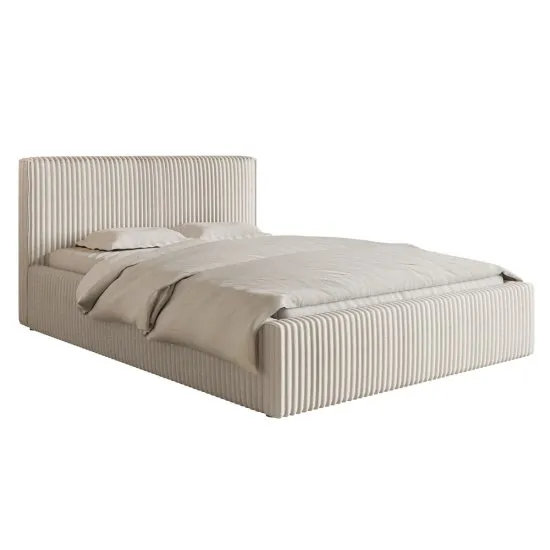 SELSEY Łóżko tapicerowane 180x200 cm Tilio z pojemnikiem stelaż metalowy kremowe gruby sztruks