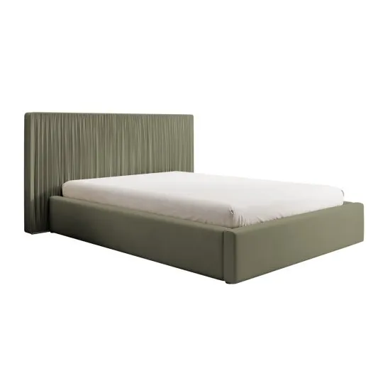 Szukasz stylowego łożka do swojej sypialni? Postaw na łożko tapicerowane Toile! Lubisz stylowe wnętrza, wypełnionymi miękkimi tkaninami oraz oryginalnymi meblami? Jeśli odpowiedz jest pozytywna, to łożko Toile jest właśnie stworzone z myślą o Tobie! Model Toile wykończono przyjemną w dotyku velvetową tkaniną, ktory idealnie dopełni wnętrza nowoczesne i w stylu glamour. Gustowne marszczenia na zagłowku nadają całości uroku oraz niepowtarzalnego charakteru. Zagłowek łożka jest miękki, zatem z przyjemnością oprzesz na nim głowę podczas czytania ulubionej książki. Łożko posiada w zestawie metalowy stelaż wyposażony w podnośniki gazowe, ktore ułatwią dostanie się do pojemnika na pościel bez nadmiernego nadwyrężania Twoich plecow. Szczegoły produktu: powierzchnia spania 180x200 cm pojemnik na pościel solidny metalowy stelaż wzbogacony o podnośniki gazowe wspomagające otwieranie stylowe marszczenia na miękkim wezgłowiu i ramie, mebel obito tkaniną Opera forest w oliwkowym kolorze Opera to