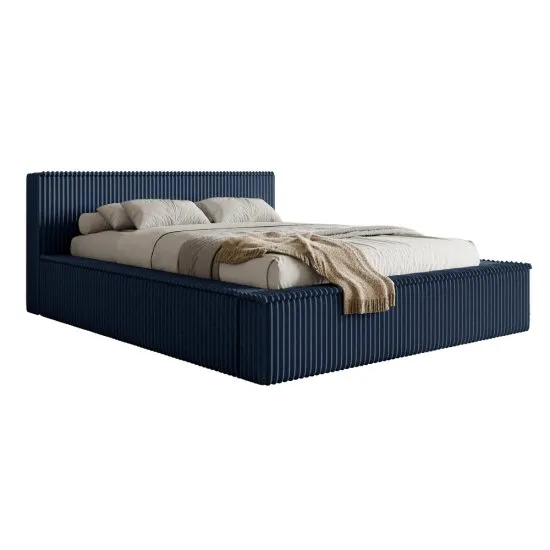 SELSEY Łóżko tapicerowane Affolio 180x200 cm z pojemnikiem granatowe gruby sztruks