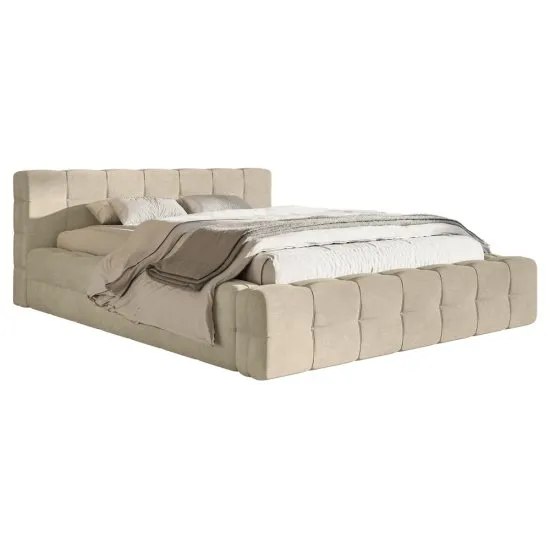 SELSEY Łóżko tapicerowane Puffly 140x200 cm z pojemnikiem stelaż metalowy beżowy welur