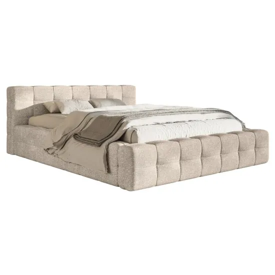 SELSEY Łóżko tapicerowane Puffly 160x200 cm z pojemnikiem stelaż metalowy beżowy szenil