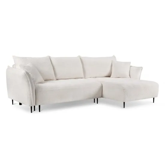 SELSEY Narożnik Minulo z funkcją spania L-kształtny z pojemnikiem kremowy boucle prawostronny