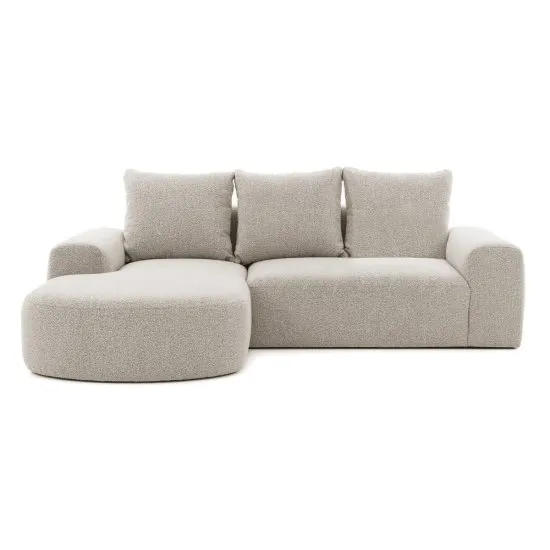 Marzysz o stylowym wyposażeniu swojego salonu? Narożnik Castellina będzie fantastycznym wyborem! Castellina to modułowa bryła o szykownym, organicznym kształcie, ktora doskonale wpisuje się w najnowsze trendy. Miękka powierzchnia mebla obita jest przyjemną tkaniną boucle o pętelkowym splocie, ktora stworzy w Twoim wnętrzu przytulny klimat. Castellina posiada szerokie podłokietniki, obszerną otomanę i komfortowe poduchy oparciowe – wszystko to zapewni Ci niezapomniany wypoczynek po ciężkim dniu. Szczegoły produktu: narożnik lewostronny, mebel L-kształtny, wymiary poduszki oparciowej: 55x60 cm, szerokość podłokietnika: 32 cm, głębokość podłokietnika: 106 cm, głębokość siedziska bez poduszek: 75 cm, głębokość siedziska z poduszkami: 58 cm, mebel obito tkaniną Abriamo 2, Abriamo to tkanina wykonana z pętelkowej przędzy, co nadaje jej wyglądu typowego dla włoczki bouclé. Materiał cechuje się wysoką odpornością na ścieranie, tarcie, pilling oraz działanie światła. Pozytywnie przechodzi test