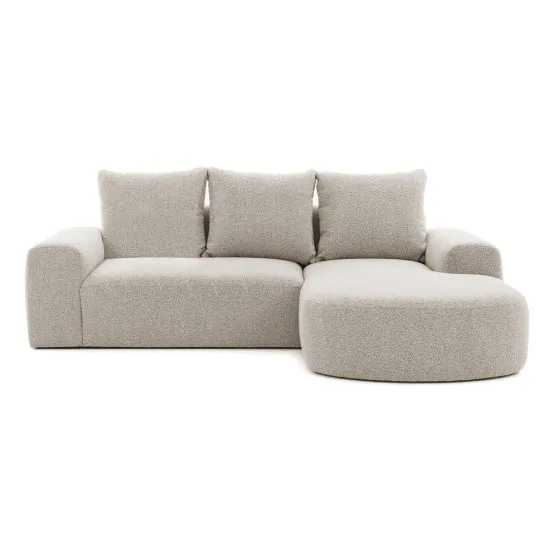 Marzysz o stylowym wyposażeniu swojego salonu? Narożnik Castellina będzie fantastycznym wyborem! Castellina to modułowa bryła o szykownym, organicznym kształcie, ktora doskonale wpisuje się w najnowsze trendy. Miękka powierzchnia mebla obita jest przyjemną tkaniną boucle o pętelkowym splocie, ktora stworzy w Twoim wnętrzu przytulny klimat. Castellina posiada szerokie podłokietniki, obszerną otomanę i komfortowe poduchy oparciowe – wszystko to zapewni Ci niezapomniany wypoczynek po ciężkim dniu. Szczegoły produktu: narożnik prawostronny, mebel L-kształtny, wymiary poduszki oparciowej: 55x60 cm, szerokość podłokietnika: 32 cm, głębokość podłokietnika: 106 cm, głębokość siedziska bez poduszek: 75 cm, głębokość siedziska z poduszkami: 58 cm, mebel obito tkaniną Abriamo 2, Abriamo to tkanina wykonana z pętelkowej przędzy, co nadaje jej wyglądu typowego dla włoczki bouclé. Materiał cechuje się wysoką odpornością na ścieranie, tarcie, pilling oraz działanie światła. Pozytywnie przechodzi test