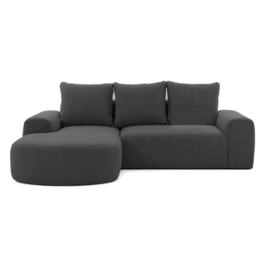 Marzysz o stylowym wyposażeniu swojego salonu? Narożnik Castellina będzie fantastycznym wyborem! Castellina to modułowa bryła o szykownym, organicznym kształcie, ktora doskonale wpisuje się w najnowsze trendy. Miękka powierzchnia mebla obita jest przyjemną tkaniną boucle o pętelkowym splocie, ktora stworzy w Twoim wnętrzu przytulny klimat. Castellina posiada szerokie podłokietniki, obszerną otomanę i komfortowe poduchy oparciowe – wszystko to zapewni Ci niezapomniany wypoczynek po ciężkim dniu. Szczegoły produktu: narożnik lewostronny, mebel L-kształtny, wymiary poduszki oparciowej: 55x60 cm, szerokość podłokietnika: 32 cm, głębokość podłokietnika: 106 cm, głębokość siedziska bez poduszek: 75 cm, głębokość siedziska z poduszkami: 58 cm, mebel obito tkaniną Abriamo 8, Abriamo to tkanina wykonana z pętelkowej przędzy, co nadaje jej wyglądu typowego dla włoczki bouclé. Materiał cechuje się wysoką odpornością na ścieranie, tarcie, pilling oraz działanie światła. Pozytywnie przechodzi test