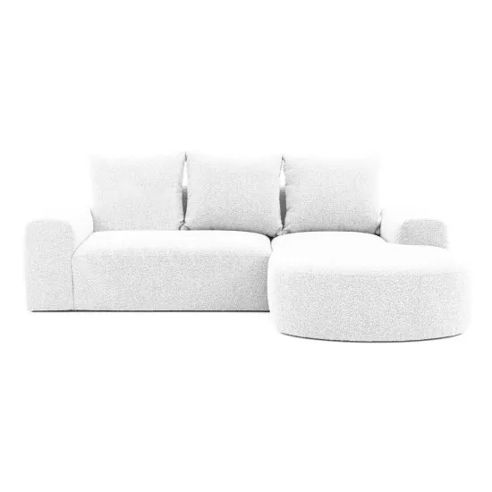 Marzysz o stylowym wyposażeniu swojego salonu? Narożnik Castellina będzie fantastycznym wyborem! Castellina to modułowa bryła o szykownym, organicznym kształcie, ktora doskonale wpisuje się w najnowsze trendy. Miękka powierzchnia mebla obita jest przyjemną tkaniną boucle o pętelkowym splocie, ktora stworzy w Twoim wnętrzu przytulny klimat. Castellina posiada szerokie podłokietniki, obszerną otomanę i komfortowe poduchy oparciowe – wszystko to zapewni Ci niezapomniany wypoczynek po ciężkim dniu. Szczegoły produktu: narożnik prawostronny, mebel L-kształtny, wymiary poduszki oparciowej: 55x60 cm, szerokość podłokietnika: 32 cm, głębokość podłokietnika: 106 cm, głębokość siedziska bez poduszek: 75 cm, głębokość siedziska z poduszkami: 58 cm, mebel obito tkaniną Abriamo 5, Abriamo to tkanina wykonana z pętelkowej przędzy, co nadaje jej wyglądu typowego dla włoczki bouclé. Materiał cechuje się wysoką odpornością na ścieranie, tarcie, pilling oraz działanie światła. Pozytywnie przechodzi test