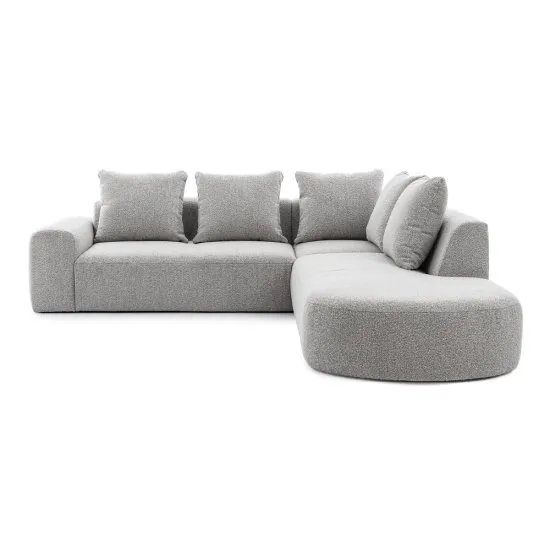 Marzysz o stylowym wyposażeniu swojego salonu? Narożnik Castellina będzie fantastycznym wyborem! Castellina to modułowa bryła o szykownym, organicznym kształcie, ktora doskonale wpisuje się w najnowsze trendy. Miękka powierzchnia mebla obita jest przyjemną tkaniną boucle o pętelkowym splocie, ktora stworzy w Twoim wnętrzu przytulny klimat. Castellina posiada szeroki podłokietnik, praktyczne oparcie, obszerną otomanę i komfortowe poduchy oparciowe – wszystko to zapewni Ci niezapomniany wypoczynek po ciężkim dniu. Szczegoły produktu: narożnik prawostronny, mebel L-kształtny, wymiary poduszki oparciowej: 55x60 cm, szerokość podłokietnika: 32 cm, głębokość podłokietnika: 106 cm, głębokość siedziska bez poduszek: 75 cm, głębokość siedziska z poduszkami: 58 cm, mebel obito tkaniną Abriamo 6, Abriamo to tkanina wykonana z pętelkowej przędzy, co nadaje jej wyglądu typowego dla włoczki bouclé. Materiał cechuje się wysoką odpornością na ścieranie, tarcie, pilling oraz działanie światła.