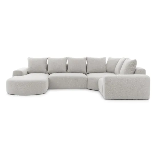 Marzysz o stylowym wyposażeniu swojego salonu? Narożnik Castellina będzie fantastycznym wyborem! Castellina to modułowa bryła o szykownym, organicznym kształcie, ktora doskonale wpisuje się w najnowsze trendy. Miękka powierzchnia mebla obita jest przyjemną tkaniną boucle o pętelkowym splocie, ktora stworzy w Twoim wnętrzu przytulny klimat. Castellina posiada szerokie podłokietniki, praktyczne oparcie, obszerną otomanę i komfortowe poduchy oparciowe – wszystko to zapewni Ci niezapomniany wypoczynek po ciężkim dniu. Szczegoły produktu: narożnik z oparciem po prawej stronie, mebel U-kształtny, wymiary poduszki oparciowej: 55x60 cm, szerokość podłokietnika: 32 cm, głębokość podłokietnika: 106 cm, głębokość siedziska bez poduszek: 75 cm, głębokość siedziska z poduszkami: 58 cm, mebel obito tkaniną Abriamo 6, Abriamo to tkanina wykonana z pętelkowej przędzy, co nadaje jej wyglądu typowego dla włoczki bouclé. Materiał cechuje się wysoką odpornością na ścieranie, tarcie, pilling oraz działanie