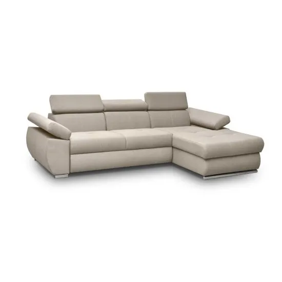 SELSEY Narożnik z funkcją spania Ararip 276 cm L-kształtny z regulowanymi zagłówkami i pojemnikiem jasnobeżowy welur hydrofobowy prawostronny