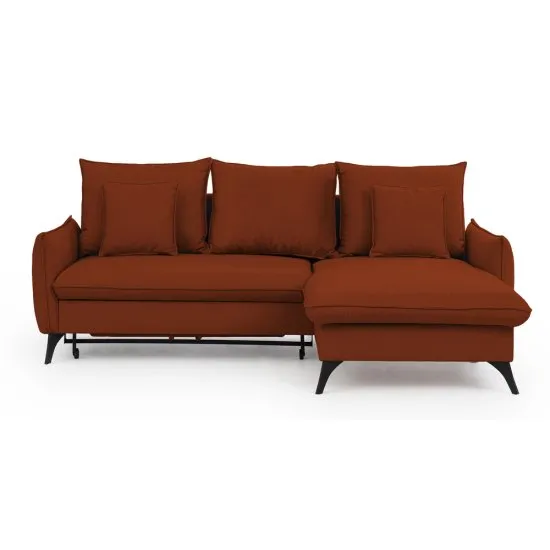 Marzysz o stylowym meblu wypoczynkowym w nowoczesnym wydaniu? Postaw na narożnik Cambiano, a na pewno się nie zawiedziesz! Cambiano to bryła o wspołczesnym kształcie, ktora przyciągnie wzrok każdego gościa. Wysokie, metalowe nożki w czarnym kolorze, smukłe podłokietniki oraz szykowna lamowka tworzą modernistyczny wygląd narożnika. Miękkie poduszki zapewnią Ci wygodny odpoczynek. Mebel posiada funkcję spania oraz przestronny pojemnik na pościel, w ktorym przechowasz zapasowe tekstylia. Szczegoły produktu: narożnik L-kształtny, mebel prawostronny, gęstość pianki w siedzisku: 30/37, gęstość pianki w materacu: 25/45, tapicerowany tył, wymiary pojemnika na pościel: 142x76x15 cm, przeszycia ozdobne: francuskie, wypełnienie poduszek oparciowych oraz ozdobnych: frytka, w wyposażenie narożnika wchodzą trzy poduszki oparciowe oraz dwie poduszki ozdobne, głębokość siedziska z poduszkami: 50 cm, głębokość siedziska bez poduszek (do oparcia): 68 cm, głębokość podłokietnika: 90 cm, mebel obito