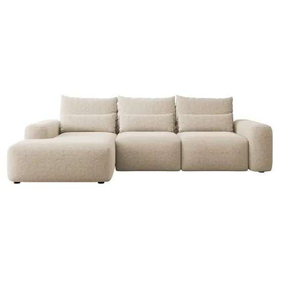 SELSEY Narożnik z funkcją spania Carnos L-kształtny z dodatkowymi poduszkami lędźwiowymi beżowy szenil hydrofobowy lewostronny