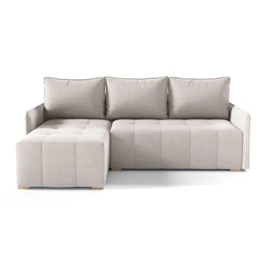 Szukasz nowego wymiaru wygody w swoim mieszkaniu? Nie możesz zdecydować się na formę narożnika? Wybierz narożnik Grenada i połącz klasyczny kształt z funkcjonalnością, jednocześnie dając nowy element dekoracji swojego pomieszczenia! Narożnik Grenada z funkcją spania to doskonałe rozwiązanie dla osob ceniących sobie funkcjonalność i komfort w jednym. Wyposażony w pojemnik na pościel, pozwala na praktyczne przechowywanie drobiazgow lub kompletu pościeli czy kocow na wyczekane chwile odpoczynku. Stabilne, drewniane nożki nadają meblowi eleganckiego wyglądu i solidności. Narożnik posiada dwa podłokietniki oraz trzy wygodne i zdejmowane poduszki oparciowe, ktore zapewniają komfort podczas codziennego użytkowania. Narożnik jest wyposażony w sprężyny faliste typu B oraz pianki poliuretanowe T25 (średniotwarda) i T28 (twarda), ktore charakteryzują się małą podatnością na odkształcenia, co znacząco przedłuża żywotność mebla. Szerokie siedzisko zapewnia wygodę zarowno podczas siedzenia, jak i