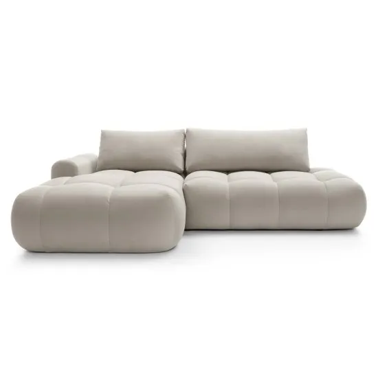 Szukasz mebla łączącego wygodę z wyjątkowym designem? Narożnik Ombo jest właśnie dla Ciebie! Narożnik Ombo został wykonany w obłych kształtach, co nadaje mu nowoczesny i elegancki wygląd. Ten niebanalny design idealnie wpisuje się w rożne style wnętrz, dodając im nuty wyrafinowania i klasy. Dodatkowym atutem tego narożnika jest funkcja spania, ktora pozwala na wygodne przekształcenie mebla w wygodne łożko. Dzięki temu możesz zaprosić gości do swojego domu i zapewnić im wygodne miejsce do spania, nawet jeśli masz ograniczoną przestrzeń. Narożnik posiada rownież praktyczny pojemnik na pościel, ktory pozwoli zachować porządek w Twoim salonie. Jednym z wyrożniających cech tego narożnika jest tkanina łatwoczyszcząca, ktora nie tylko prezentuje się stylowo, ale rownież ułatwia utrzymanie mebla w czystości, jest odporna na plamy, dzięki czemu możesz cieszyć się świeżym i czystym meblem przez długi czas. Szczegoły produktu: narożnik jest lewostronny gęstość pianki: T30 sposob rozkładania DL,